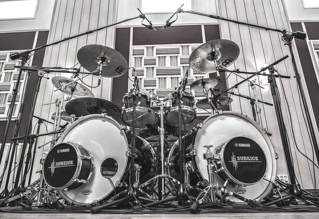 GAP Ribbon (x4), Shotgun mics, Shure Beta91 (x3), Sennheiser e901 (x2), Yamaha Subkick (x2)