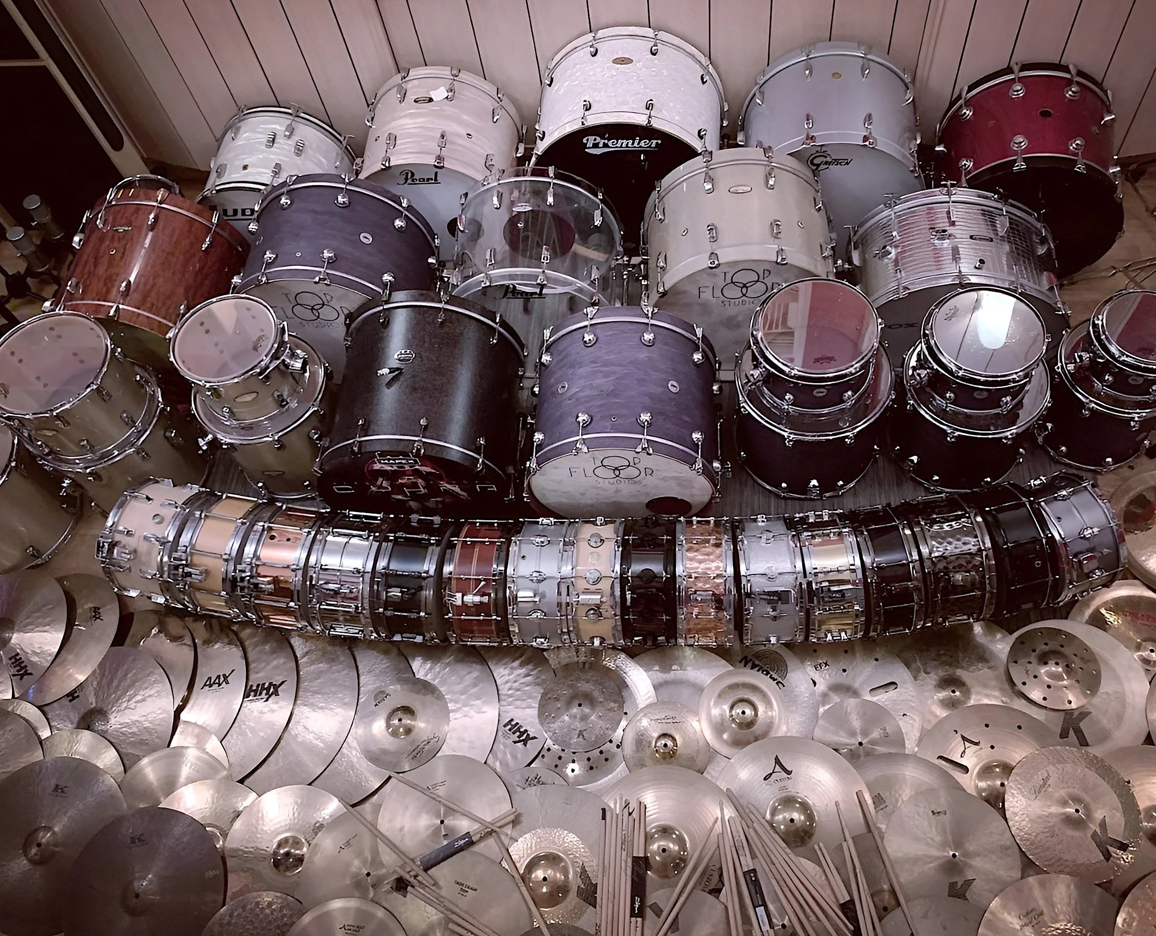 5 kits from Pearl Masterworks, DS Custom Drums, Ludwig 70s Vistalite, etc.